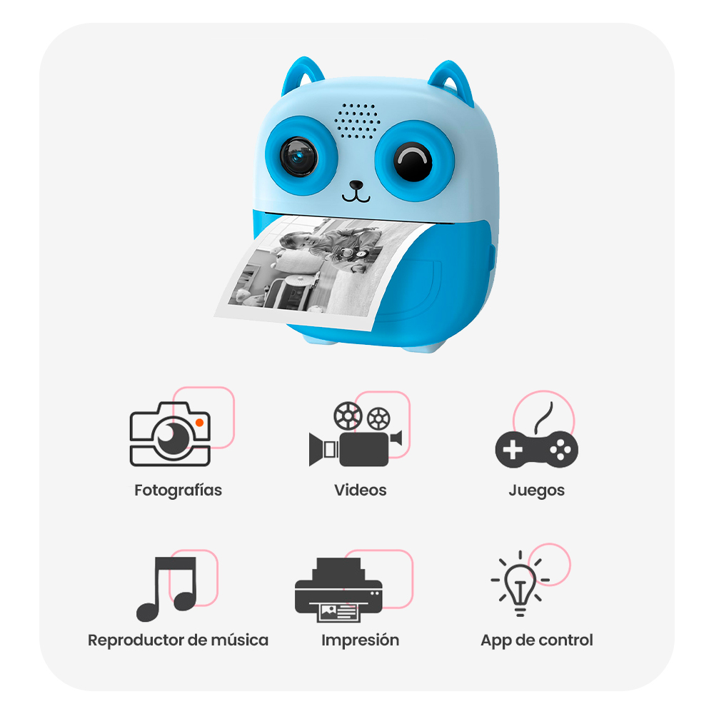 Diseñada para que los chicos se diviertan y desarrollen su creatividad, esta cámara saca fotos, graba videos en HD y las imprime al instante en blanco y negro, listas para que las decoren, pinten o personalicen como quieran.