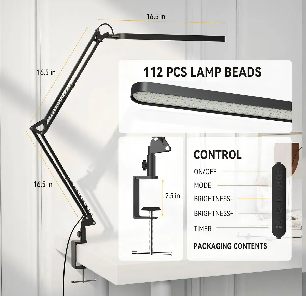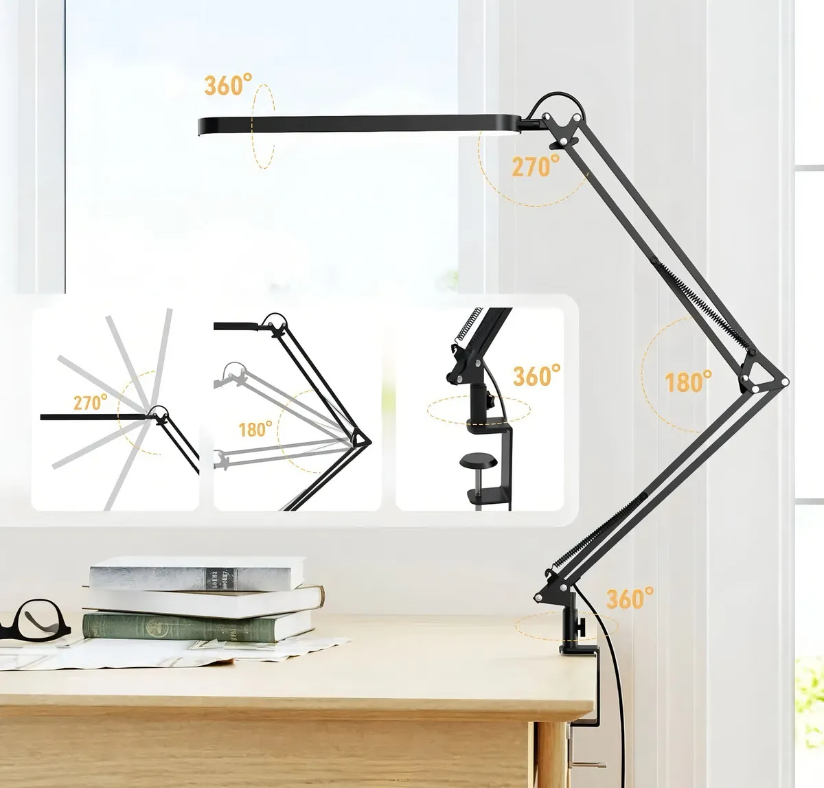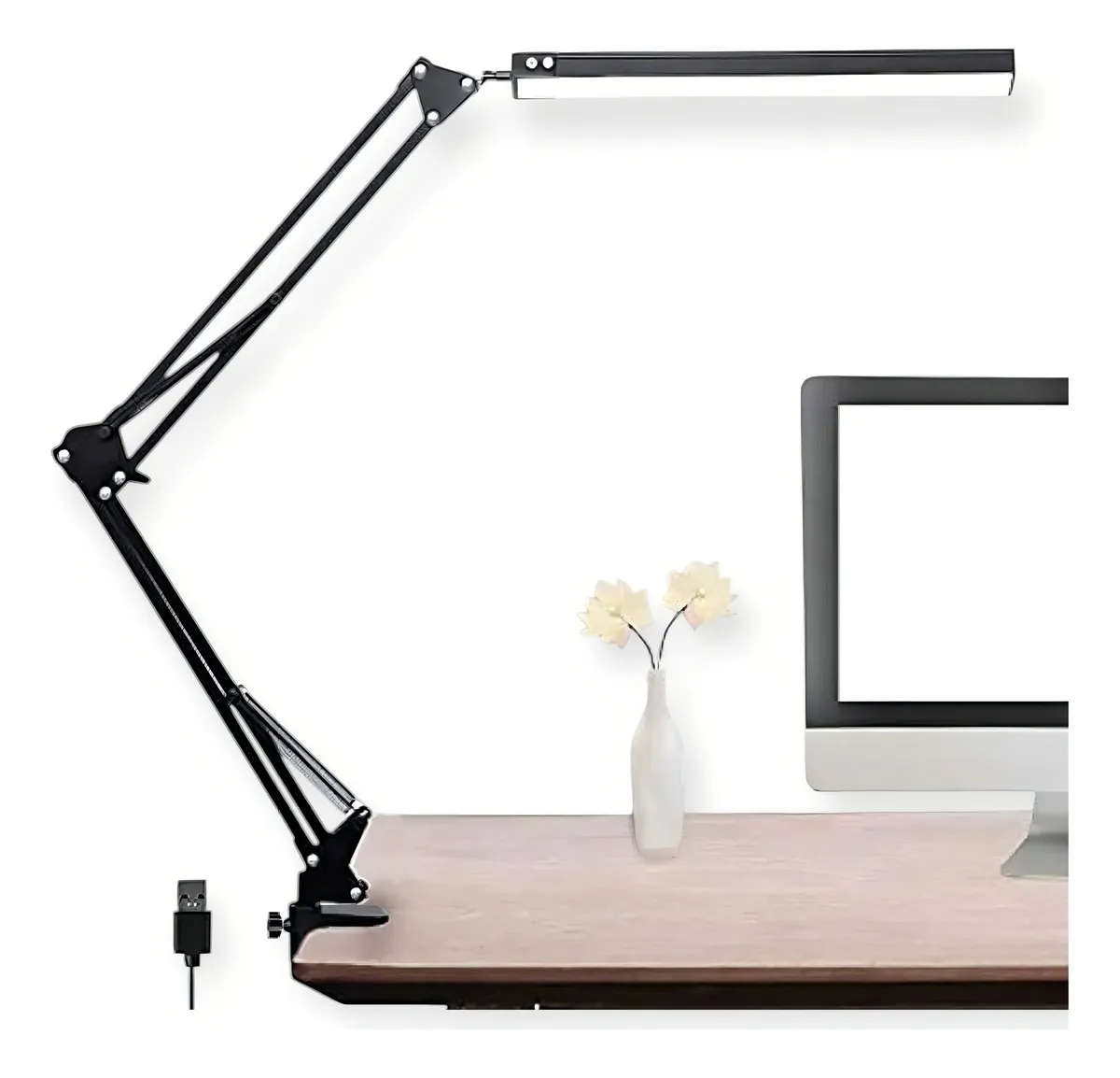 Esta lámpara de escritorio articulada es la herramienta ideal para quienes estudian, leen o trabajan, ofreciendo una iluminación potente, adaptable y segura. Su diseño flexible con brazo de limpieza y fijación por morza te permite ajustar la luz exactamente donde la necesitás.