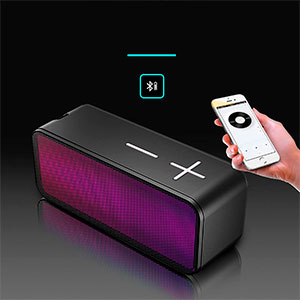 Sonido estéreo de 10 W con graves potentes e iluminación RGB dinámica. Conectividad Bluetooth, reproducción USB, entrada auxiliar y MicroSD. Batería recargable de larga duración y diseño portátil ideal para uso en casa o al aire libre.